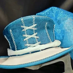 Hand stitched corset hat in GORGEOUS shimmer white leather and sumptuous cobalt Bison leather. Featuring a beautiful tulle fall that can be removed or styled to your preference. As always, one of a kind! OWN IT! LOVE IT! Custom made hats are our specialty. Give us a call and let's create something wonderful!
