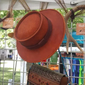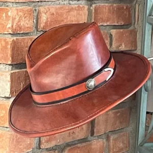 Hand crafted, hand stitched in premium Veg Tan leather, dyed in your choice of color, wear it with the brim up ala Butch Cassidy or brim down ala Sammy Davis Jr. Each hat is made to order. Options available include tooling, custom hat band and your choice of color. Message us today!