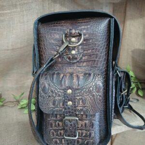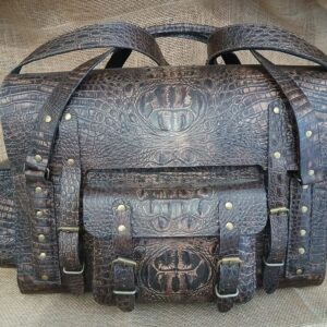 Travel like the Legendary gentleman you are. Hand crafted, hand stitched and 100% one of a kind. Crafted from luxurious embossed croc in rich shades of dark chocolate. Multiple pockets throughout the entire bag make it easy to organize your travel necessities. The spacious central compartment has more than enough room for shoes, laptop and clothing.