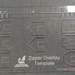The Ultimate Zipper Template! Choose from 6, 7, 8 or 9 inch zipper over lay length and then choose from 8 overlay end designs. The convenient 1/8" hashmarks allow you to perfectly place your zipper overlay on your leather. GENIUS!