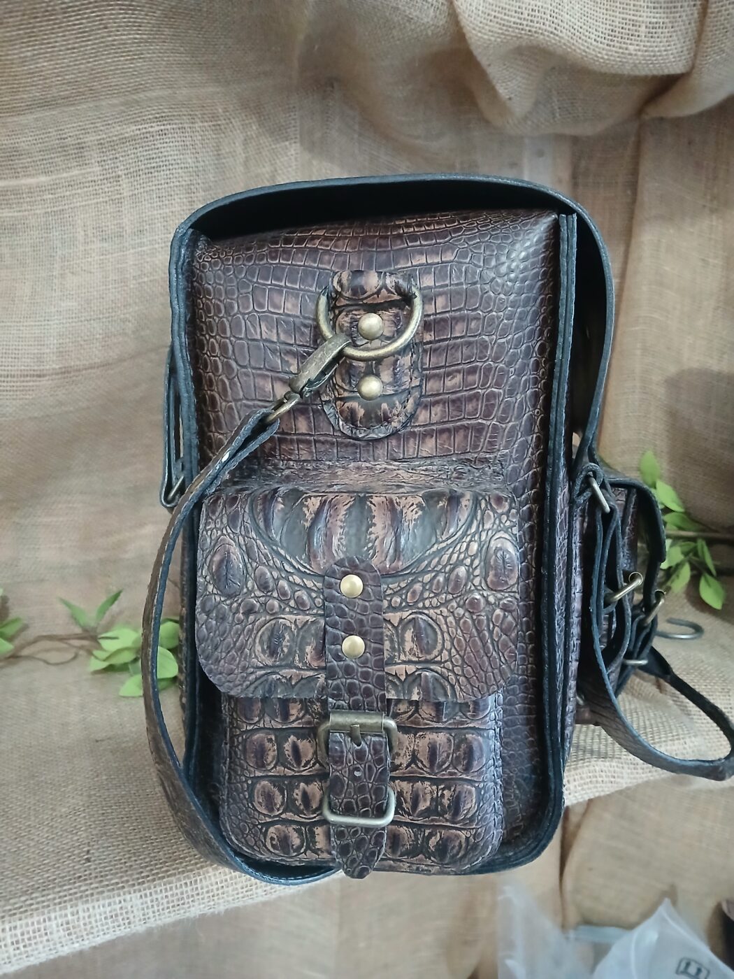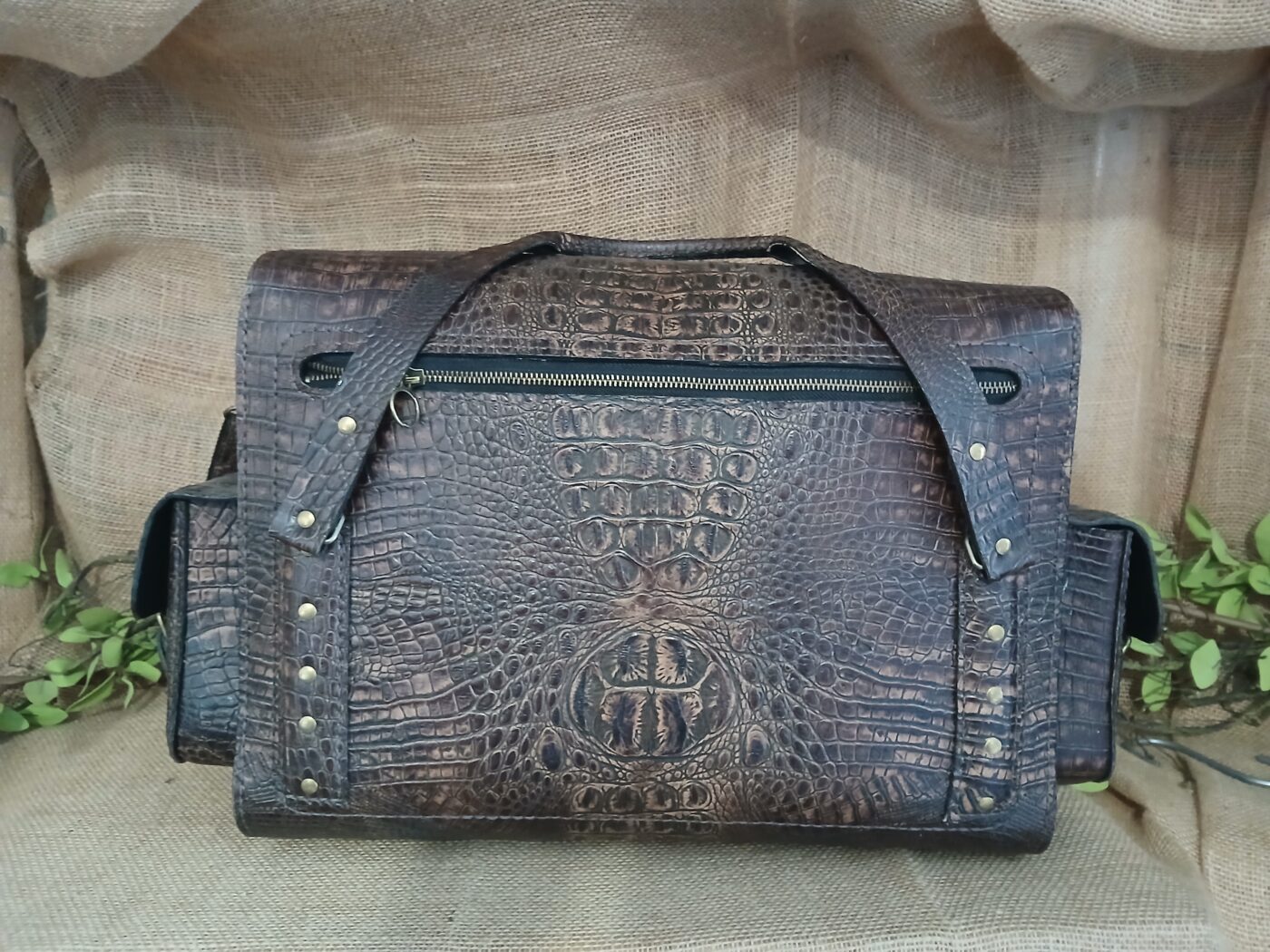 Travel like the Legendary gentleman you are. Hand crafted, hand stitched and 100% one of a kind. Crafted from luxurious embossed croc in rich shades of dark chocolate. Multiple pockets throughout the entire bag make it easy to organize your travel necessities. The spacious central compartment has more than enough room for shoes, laptop and clothing.