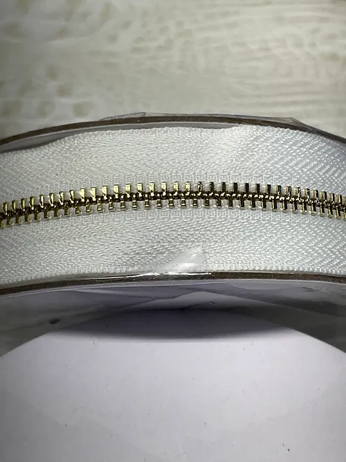 Beautiful, high end zipper tape that will accommodate 2 way zippers or can be used in a single direction. Each tooth is hand polished and placed on this high quality ribbon. We can custom create over 500 colors and have zipper teeth available in Bronze, Gold, Gunmetal and Silver. Please send me a message if you would like to discuss custom color options. These are #5 metal zippers and each roll contains 5 meters of tape.