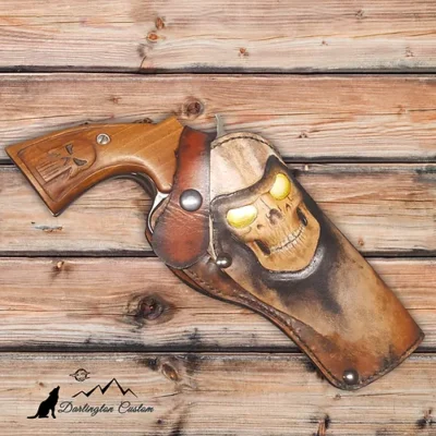 Handmade veg tan holster with stamping, carving and painting.